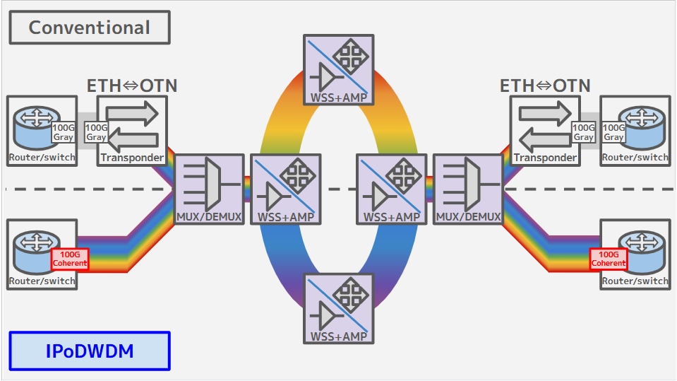 (Figure 1) Transponder-based Configuration vs. IPoDWDM Configuration